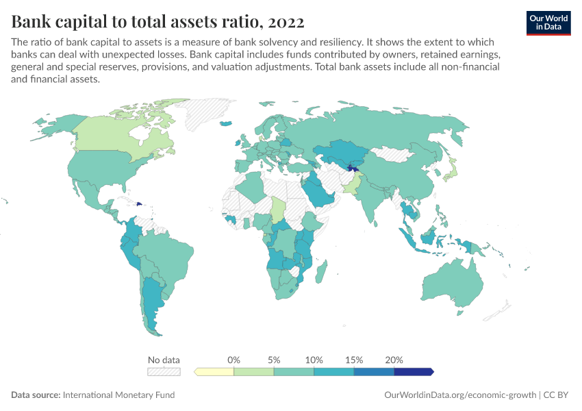 “Data Page: Bank capital to total assets ratio”. Our World in Data (2026). Data adapted from International Monetary Fund. Retrieved from https://add-force-datapage.owid.pages.dev/grapher/bank-capital-to-total-assets-ratio [online resource]How to cite this data