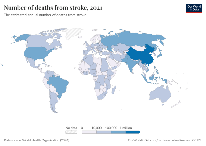 World Health Organization (2024) – with major processing by Our World in Data. “Number of deaths from stroke” [dataset]. World Health Organization, “Global Health Estimates” [original data]. Retrieved March 2, 2026 from https://add-force-datapage.owid.pages.dev/grapher/deaths-from-strokes-ghe