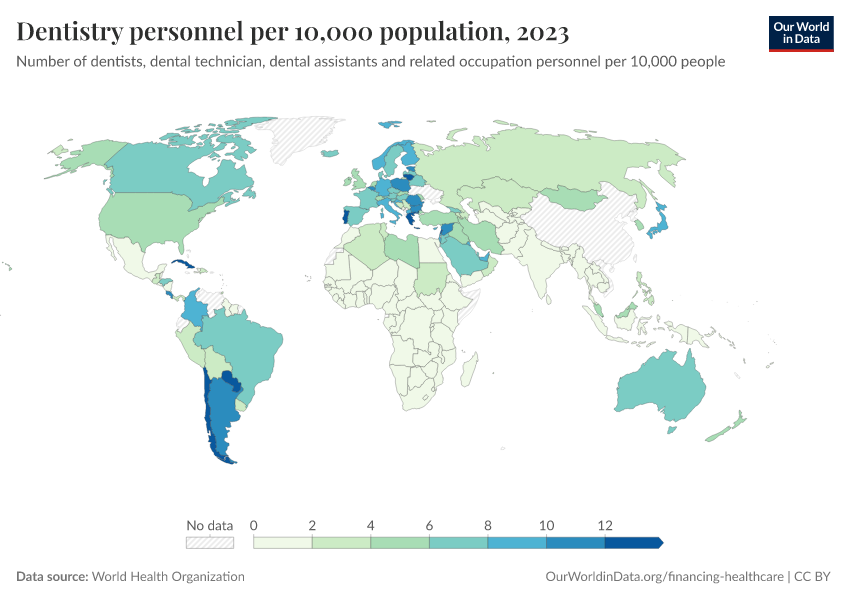 “Data Page: Dentistry personnel per 10,000 population”. Our World in Data (2026). Data adapted from World Health Organization. Retrieved from https://add-force-datapage.owid.pages.dev/grapher/dentistry-personnel-per-1000 [online resource]How to cite this data