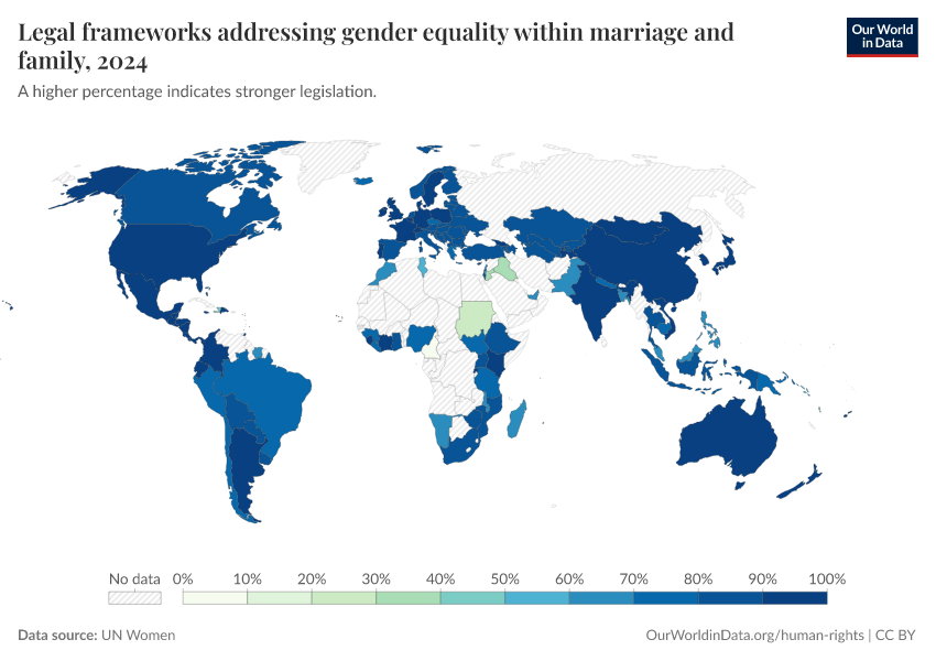 “Data Page: Legal frameworks addressing gender equality within marriage and family”. Our World in Data (2026). Data adapted from UN Women. Retrieved from https://add-force-datapage.owid.pages.dev/grapher/legal-frameworks-gender-equality-within-marriage-and-family [online resource]How to cite this data