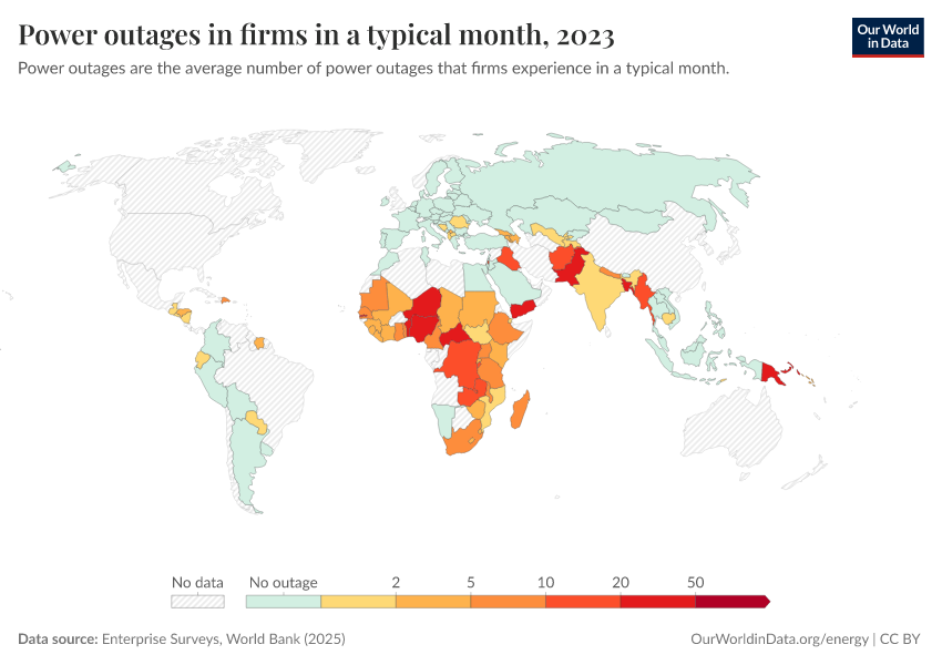 Power outages are the average number of power outages that establishments experience in a typical month.
