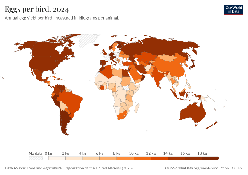 Hannah Ritchie, Pablo Rosado, and Max Roser (2019) - “Meat and Dairy Production” Published online at OurWorldinData.org. Retrieved from: 'https://add-force-datapage.owid.pages.dev/meat-production' [Online Resource]BibTeX citation