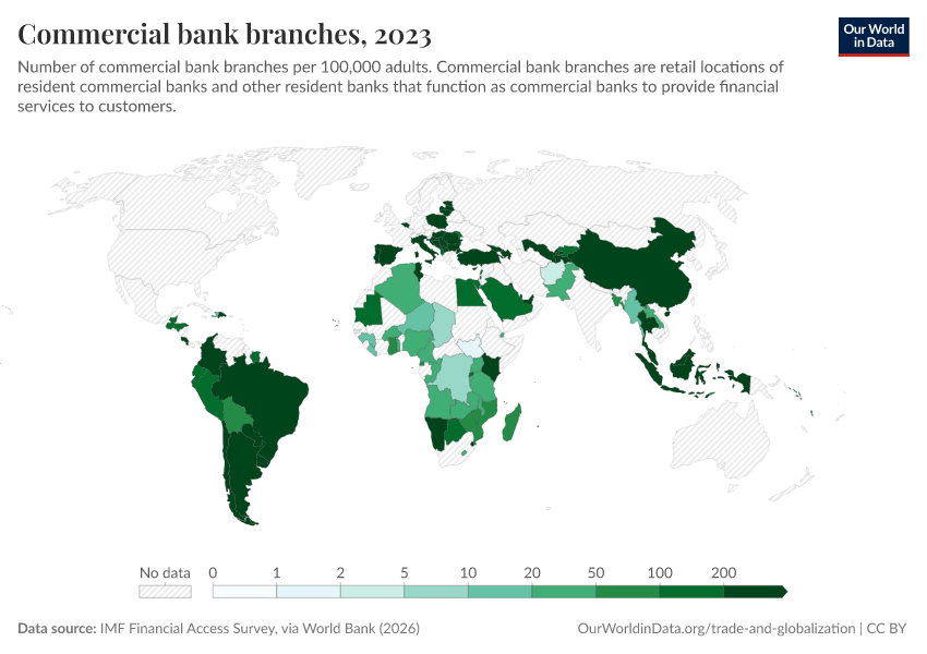 Data for this indicator is shown in the interactive visualizations, with data on commercial bank branches in the first chart and data on ATMs in the second chart.