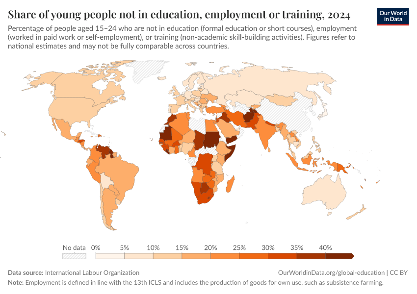 This is measured as the share of young people (aged 15-24 years) not in education, employment or training in a given country and year.